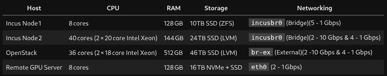 I’ll keep this knowledge and skill set in my toolkit, but it’s time to focus on new challenges as I upgrade my home lab infrastructure. After researching cloud technologies and developing a keen interest in them, I’ve decided to build a cloud platform that integrates both Linux Container Manager (Incus) and the OpenInfra Foundation’s Project OpenStack. I wanted a cleaner, open-source stack that scales from a home lab to a small data-center with minimal bloat.