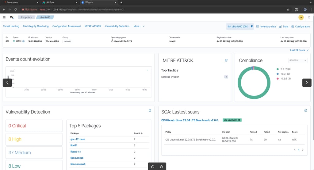 (Wazuh server instance running on Incus server node 1 – agent deployed to Ubuntu/22.04 container)