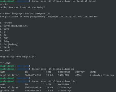 (Ollama docker instance deployed on GPU server that interfaces with the Incus server containers)